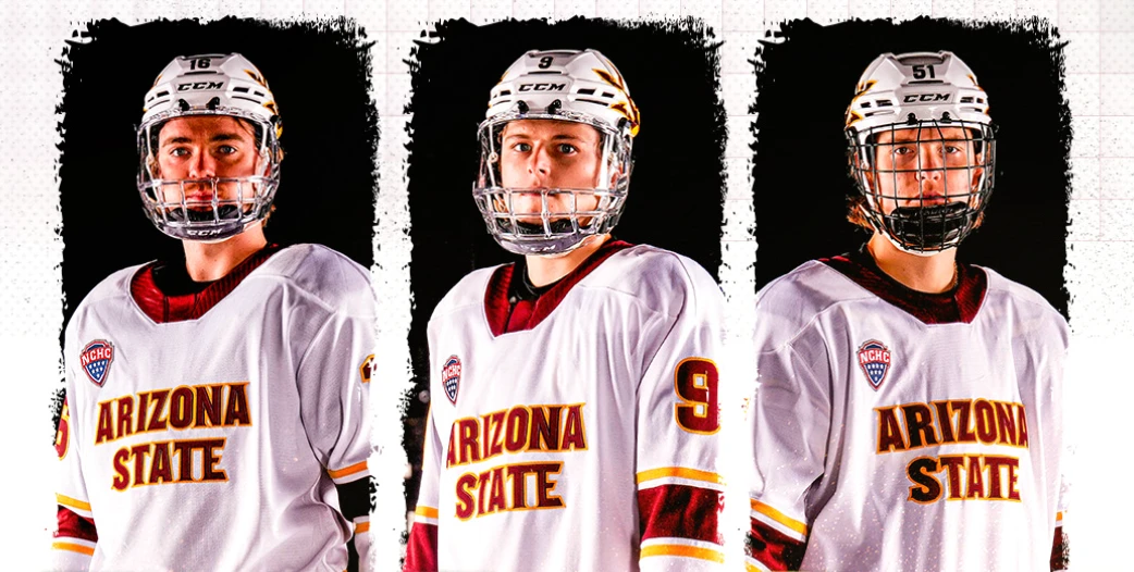 Photo - Sun Devil Athletics/Junior forward Sean McGurn, junior defenseman Anthony Dowd, and senior forward Cruz Lucius