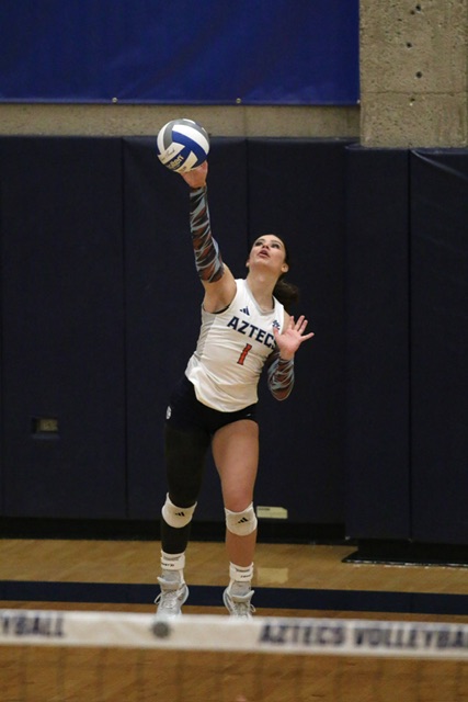 She finished the week of Oct. 12-18 with 33 kills on 90 attacks (.255) with 37 digs, 10 aces and five assists as the Aztecs played 10 sets but fell at Central Arizona College and Mesa Community College.