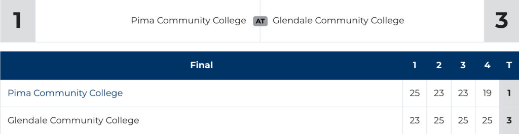 Aztecs Volleyball falls in four sets at Glendale CC to close regular season play