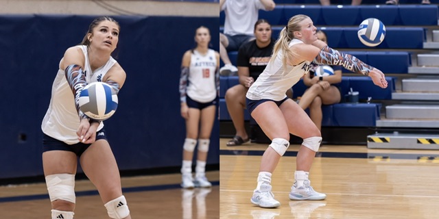 (Tucson, AZ) Pima Community College volleyball players Maggie McReynolds (Mountain View HS) and Julia Baird received recognition from the Arizona Community College Athletic Conference as the duo were selected for regular season honors.