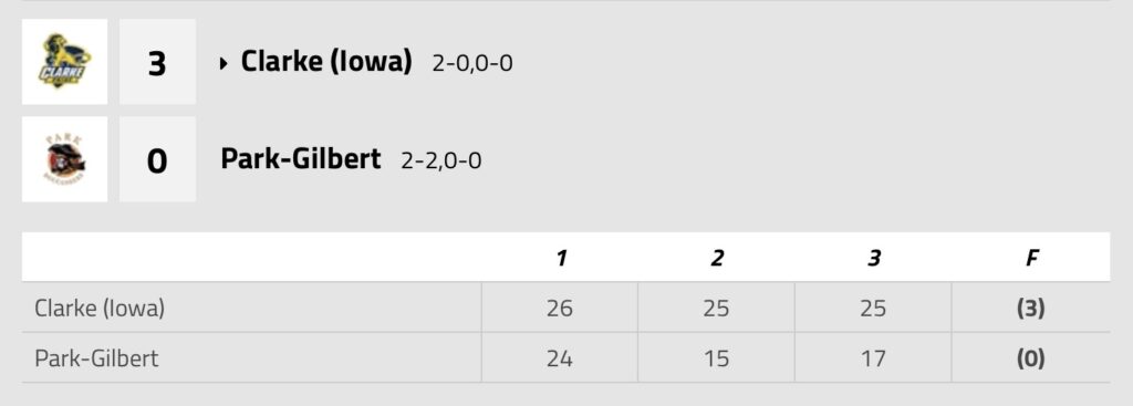 Match 4 – Clarke 3, Park Gilbert 0 (26-24, 25-15, 25-17)