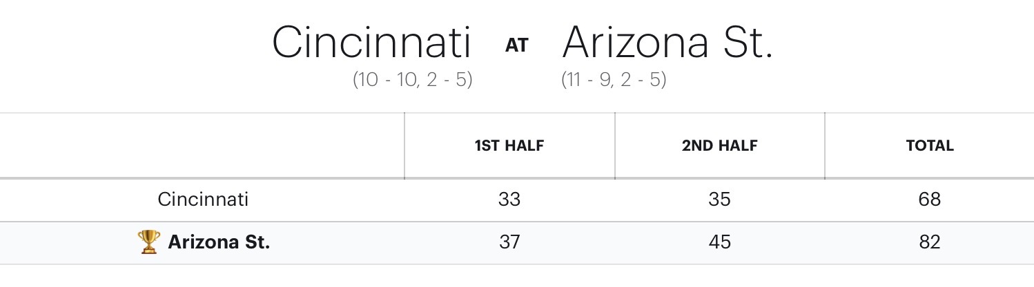 (Tempe, AZ) Arizona State Men’s Basketball took down Cincinnati, 82-68, to earn their second Big 12 Conference win of the season.