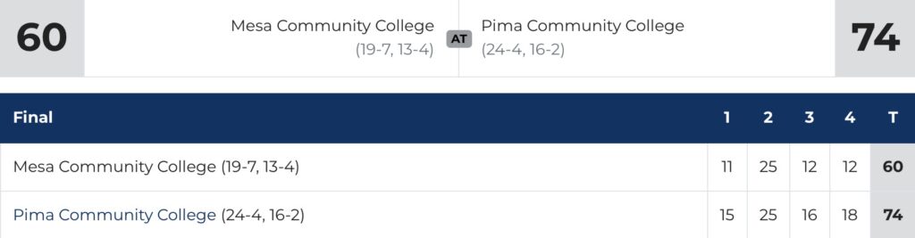 (Tucson, AZ) The Pima Community College women’s basketball team (24-4, 16-2 in ACCAC) closed out the regular season on Wednesday against Mesa Community College on Jim Rosborough Appreciation Night at the West Campus Aztec Gymnasium