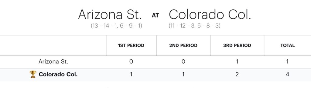 Arizona State (13-14-1, 6-9-1 NCHC) was unable to find any rhythm as the Sun Devils committed five penalties, which led to Colorado College (11-12-3, 5-8-3 NCHC) outshooting ASU 42-22.