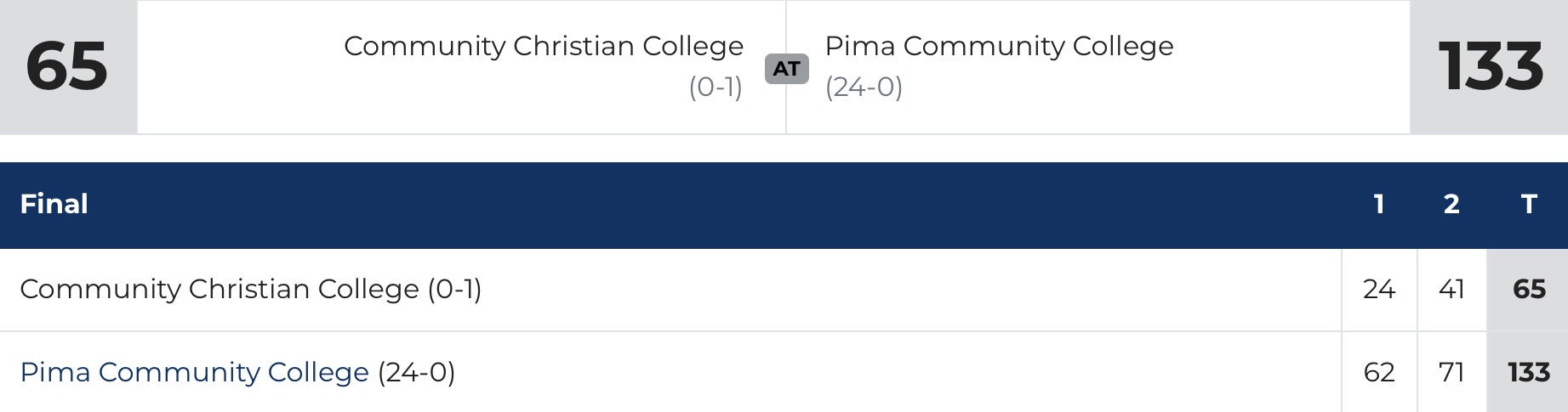 The Aztecs led early but created some space with a 7-0 run to make it 18-9. Up 22-13, they went on an 18-0 run in a little over five minutes to take a 40-13 advantage. Pima led 62-24 at halftime.