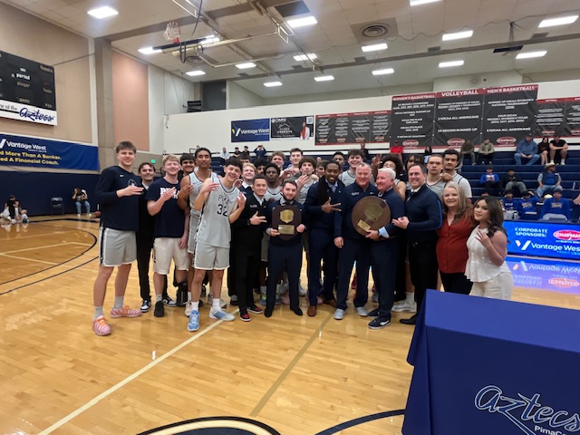 The No. 1 seeded Aztecs defeated No. 3 Scottsdale Community College 74-49 to win their third straight Region I, Division II and West District Championships.