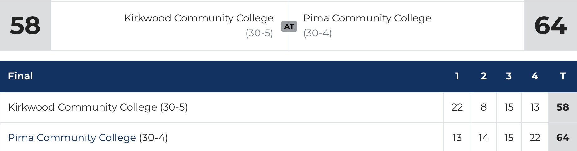 The No. 4 seeded Aztecs defeated No. 6 Kirkwood Community College (IA) 64-58.