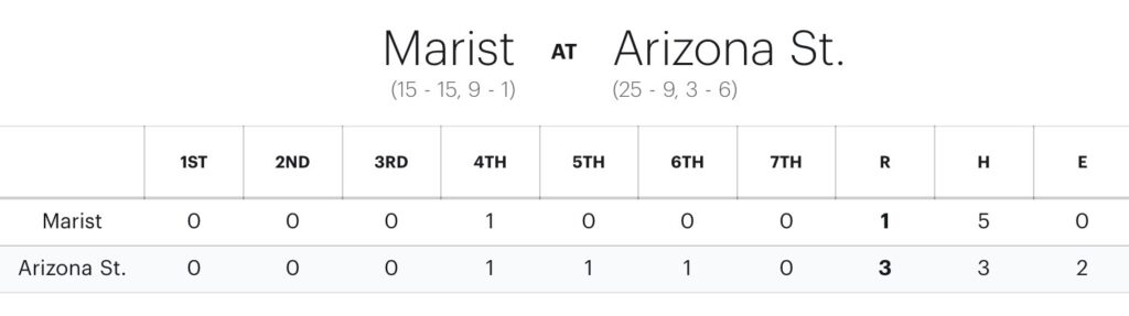 Marist’s one base hit – a two-out single to shallow left field by Lily Roumelis in the top of the fourth – in 10 at bats with a runner on base was the fewest hits allowed by Sun Devil pitching with a runner on base since holding then-No. 21/15 Oklahoma State 1-for-9 with a runner on base.