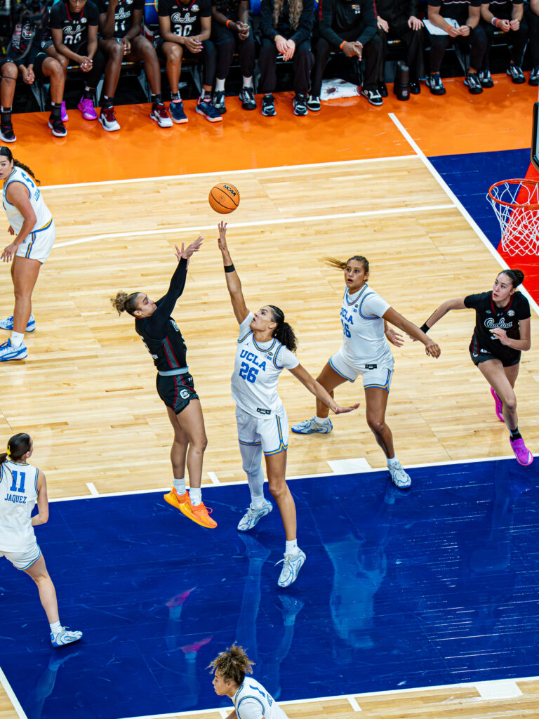 UCLA won the tip and scored quickly to start the game. The Gamecocks answered as they got under way.
