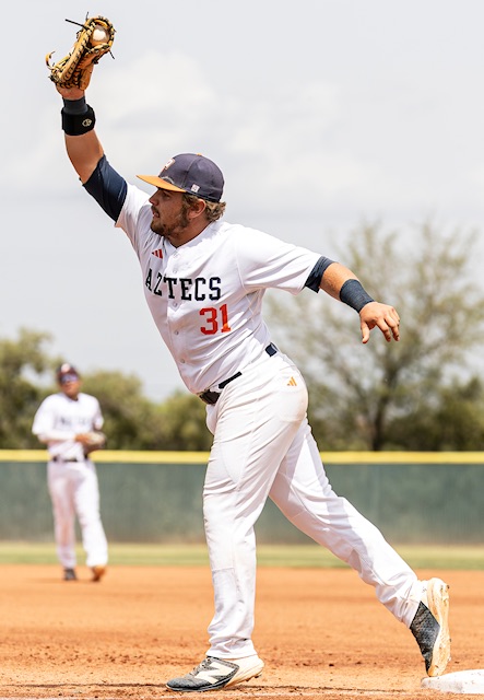 He batted .600 (6-for-10) with six RBIs, five runs scored, four walks and one home run as the Aztecs got swept by South Mountain Community College but picked up a win over Mesa Community College to close out the week.
