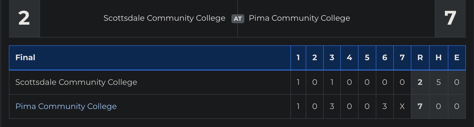 Game 1: (7) Pima Aztecs 7, Scottsdale Artichokes 2