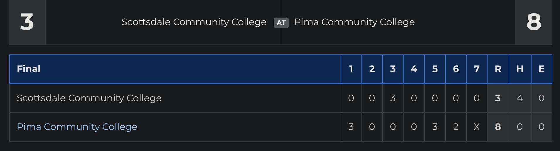 Game 2: (7) Pima Aztecs 8, Scottsdale Artichokes 3